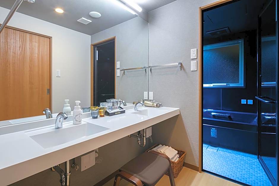 Guests will have a special experience as this suite provides a hot tub and a private open-air bath. Featuring a private entrance, this air-conditioned suite is consisted of of 1 living room, 2 separate bedrooms and 1 bathroom with a bath and a shower. The well-fitted kitchen features a stovetop, a refrigerator, kitchenware and a microwave. The spacious suite offers a washing machine, tatami, soundproof walls as well as a terrace with a quiet street view. The unit offers 1 bed and 4 futons.